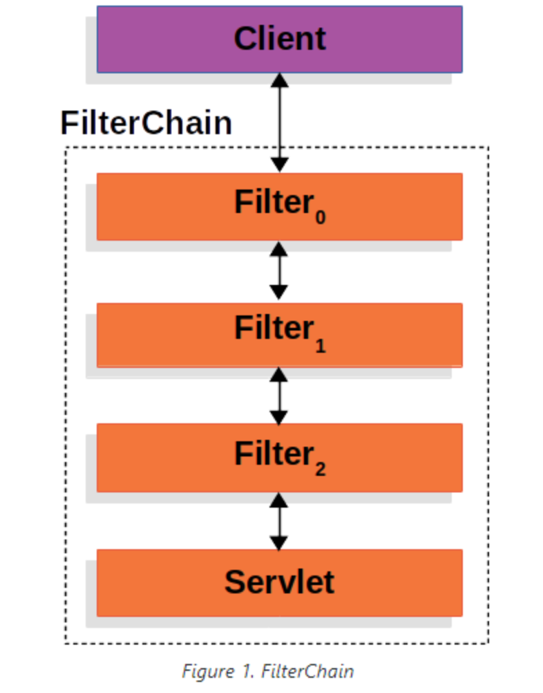 클라이언트가 요청을 어플리케이션에 전달하면 컨테이너는 FilterChain