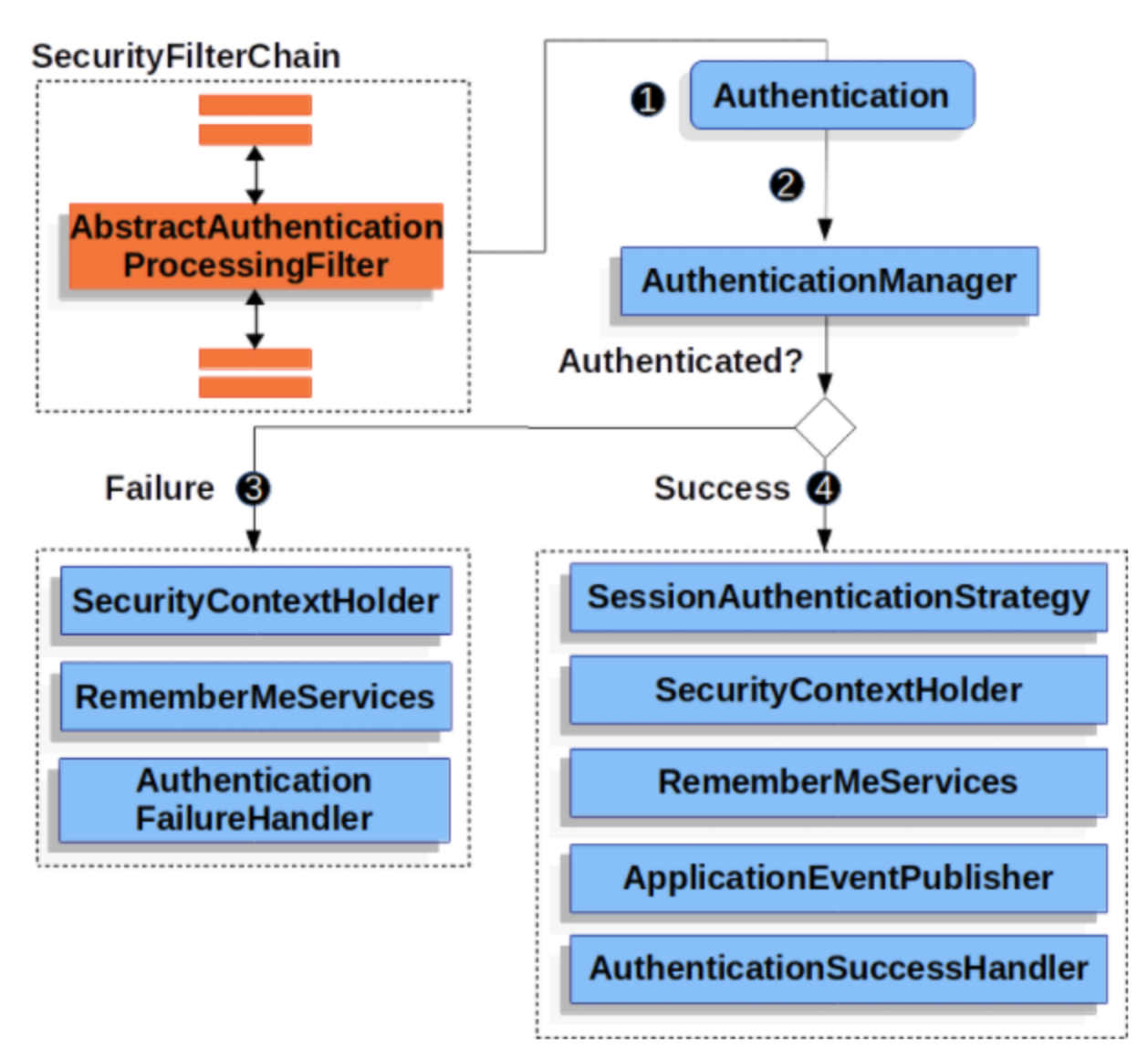 을 위해 사용됨(로그인 페이지로 redirect, WWW-Authenticate 응답 헤더 등) - AbstractAuthenticationProcessingFilter - 인증을 위해 사용되는